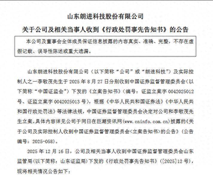 轨说念交通空调制造商朗进科技(300594)12月16日晚间公告万博manbext体育官网app娱乐,公司收到山东证监局下发的《行政经业绩前奉告书》,因关联方资金占用信息露馅行恶违纪,公司及5名包袱东说念主统统将被处以超1000万元罚金,其中骨子终了东说念主李敬茂个东说念主被罚440万元。