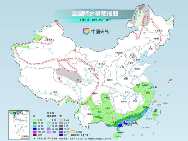 具体来看,中央欣慰台权衡,今天,内蒙古东北部、黑龙江北部、新疆北疆北部和南疆西部山区、青海南部等地部分地区有小雪或雨夹雪,其中,内蒙古东北部、黑龙江西北部等地部分地区有中到大雪;福建东南部、广东中南部、广西东南部、台湾岛北部等地部分地区有中到大雨,其中,福建东南部、广东西南部等地部分地区有暴雨或大暴雨。