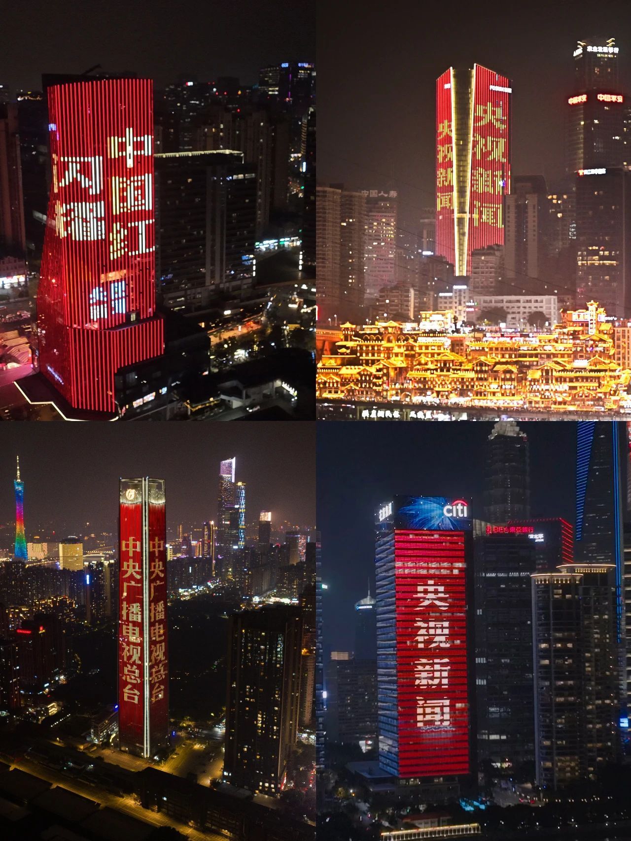 △“城市之窗”在北京、上海、广州、成都、重庆、西安、湖州、衡阳、石家庄等9座城市的地标楼宇开启灯光秀,一皆精通中国红,理财2025年。